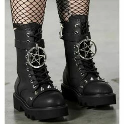Elegant walking shoes, by KILLSTAR. Composition: polyester, polyurethane (synthetic leather), PVC – 100% VEGAN. Total height of the shoe approx .: 25cm. Heel height approx .: 6.5 cm. Height of the sole under the toes approx .: 4.5 cm. Color: black – matt.