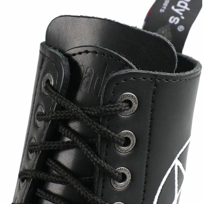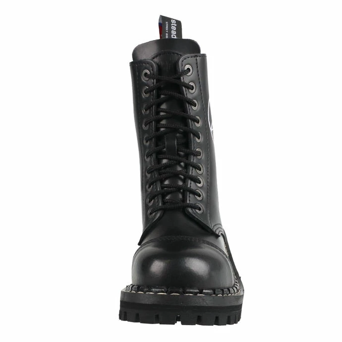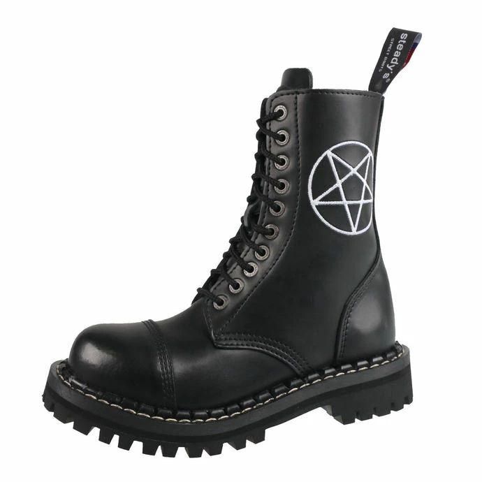10-eye boots, by STEADY’S Made of real leather covered with a paint in different shades.The outsole is made of high-quality rubber.Embroidery on the (inner) sideSlightly raised front of the shoe (tip) for higher walking comfort.Metal reinforcement in the shoe tip (toes protection).