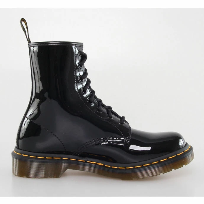 The 8-hole Dr. Martens shoes made of genuine leather coated with paint in various shades. Dr. Martens shoes, thanks to the uncompromising appearance, durability and toughness have become worldwide icons in manufacturing shoes. Inner language is at the bottom of the shoe firmly sewn – making it into the shoe does not penetrate water, mud or small stones. The outsole is the rest of the shoe thermally sealed and stitched which favorably affect the durability of footwear. The sole is made along the lines of the original Dr. Martens boots – the air suspension in the sole provides underfoot comfort and durability since 1960. The sole is also resistant to oils, greases and toughness of rubber offers good mechanical resistance and slip resistance. Color: black – glossy. Quality leather shoes! Height about shoes .: 20 cm. The height of the sole (measured at the heel) of approx .: 3cm. Material: genuine leather, paint, rubber outsole. In the top of bot is not a metal brace.