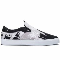 Composition: suede , inner fabric lining, rubber outsole. Color: black, white.