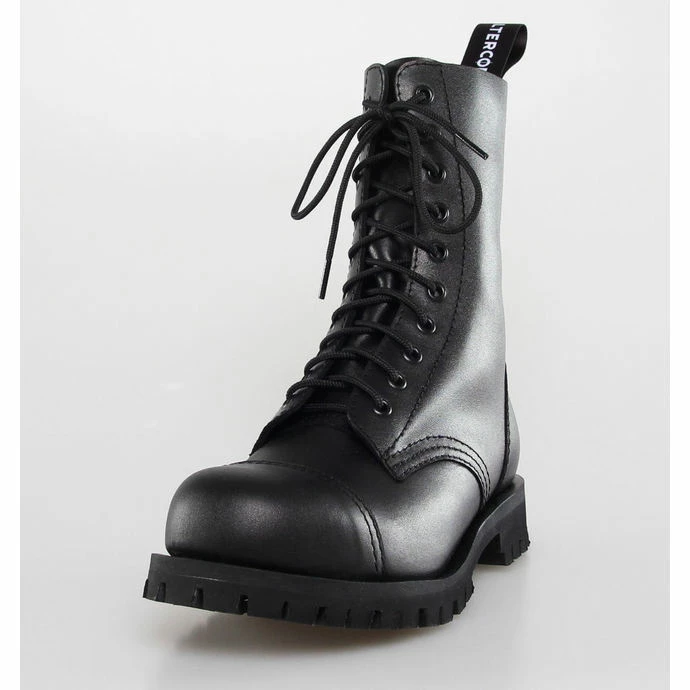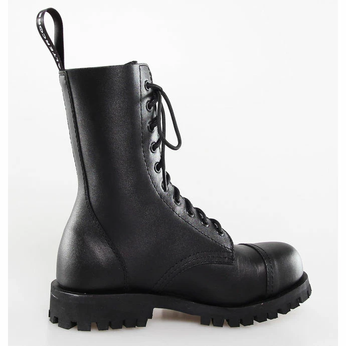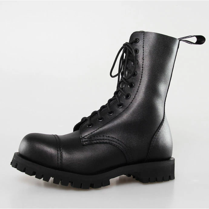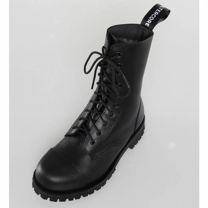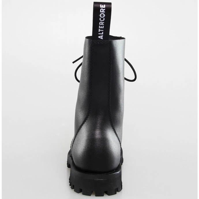 10-hole boots by ALTER CORE made of genuine leather coated in black.