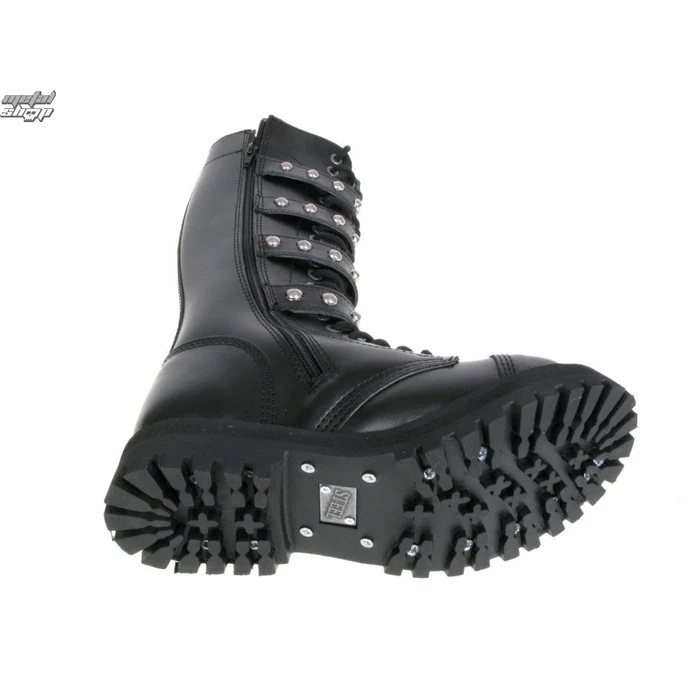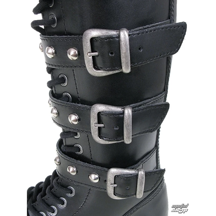 full leather 20-hole boots brand. STEEL. Composition: leather, metal. Black colour. Height approx.: 38cm. The shoe is equipped with 4x functional buckles and the inside of the shoe is equipped with a zipper for easier slipping on.