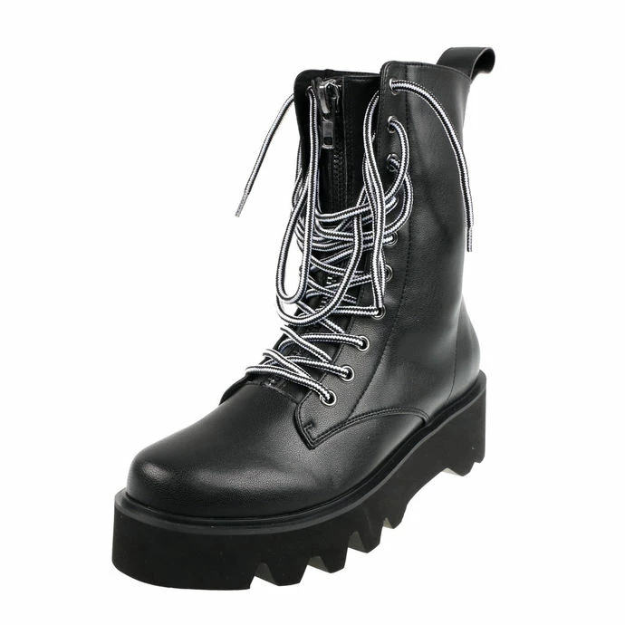 Elegant walking shoes, by DISTURBIA. The boots has both zip and lace up closure at the front. Composition: polyurethane (synthetic leather), rubber sole. Shoes height: 25cm.Heel height (total) approx.: 5cm.Platform height approx.: 3cm.