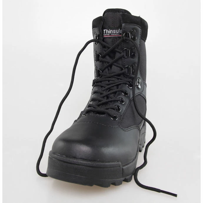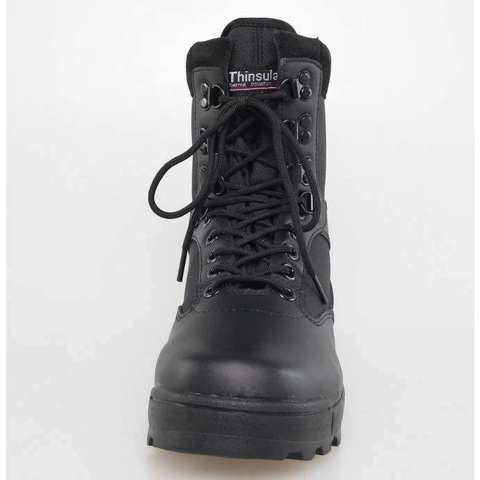 quality a 9-hole Winter footwear brand BRANDIT. The ideal choice in cold and freezing weather. The whole shoes are insulated quality Thinsulate. Inner tongue is firmly sewn on the entire length of the shoe. – thanks to penetrate into the shoes of snow, mud or small stones. The sole is made of high quality rubber which offers a very good grip (grip) on snow, ice and mud. The shoe has a membrane. Color: black. Height of shoes approx .: 22-24 cm. Height soles (measured at the heel) approx .: 3cm. Composition: polyester, insulation THINSULATE, rubber sole. In the top of bot is not a metal brace.