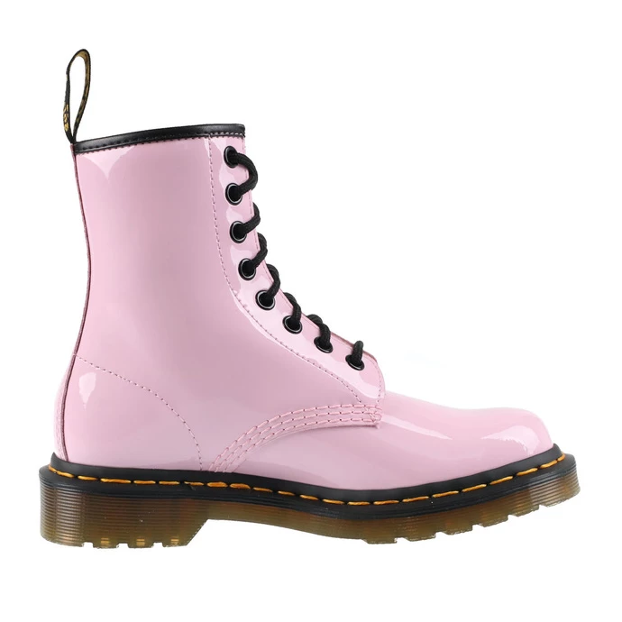 8-hole shoes by Dr. MARTENS made of genuine cowhide coated with paint. Shoes Dr. Martens thanks to their outstanding appearance, durability and tenacity, Martens have become worldwide icons in shoe industry. The inner tongue is tightly sewed to the shoe at the bottom – thanks to this, water, mud and small stones do not penetrate into the shoe. The sole is heat-sealed and sewed to the rest of the shoe, which has a positive effect on durability of the shoe. The sole is made after the model of the original Dr. shoes Martens – this air suspension in the sole has provided comfort and durability of the shoe since 1960. The sole is also resistant to oils and the tenacity of the rubber offers good mechanical resistance and anti-slip. Color: pink pastel – glossy. Quality leather shoes! Shoe height approx .: 19.5 cm. Heel height approx .: 3.5 cm. Composition: genuine cowhide, color, rubber sole. There is NO metal reinforcement in the toe of the shoe.