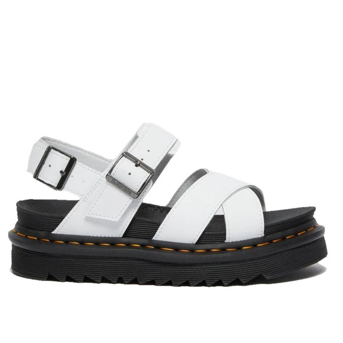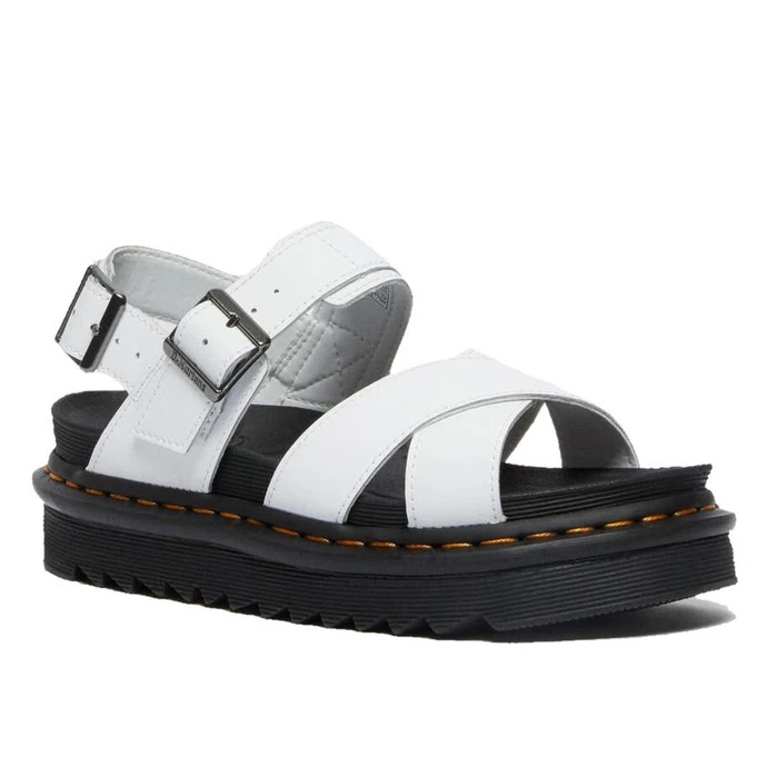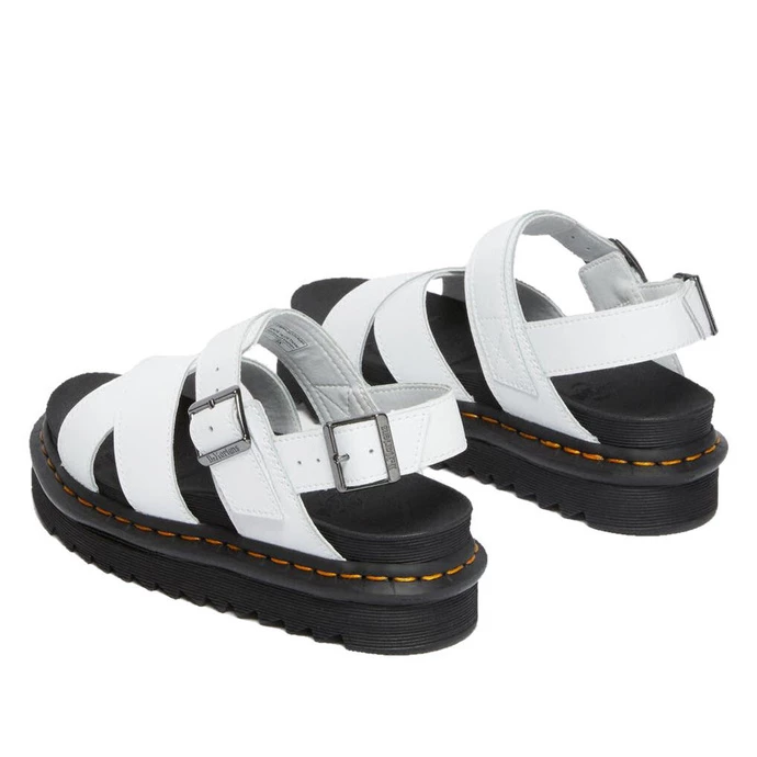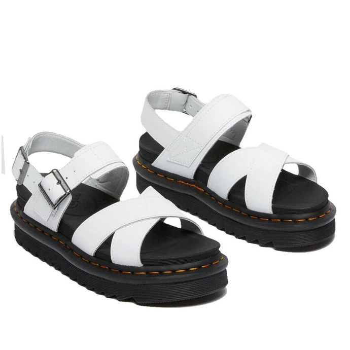 casual sandals, by DR. MARTENS. Composition: genuine leather coated with polyurethane (synthetic leather), EVA sole,. Heel height approx .: 5cm. Height of the sole under the toes approx .: 4cm. Color: matt white.